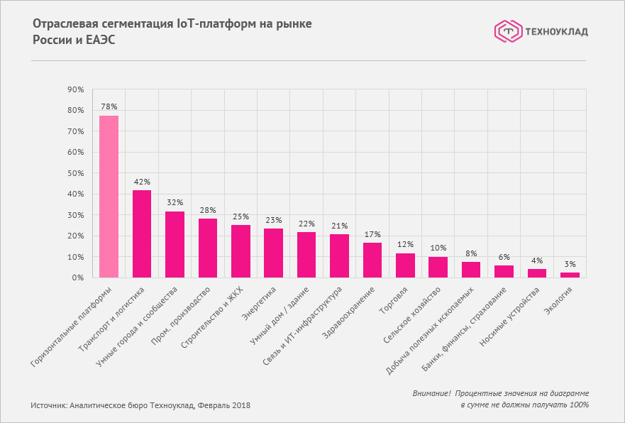Отраслевая сегментация IoT-платформ на рынке России и ЕАЭС. Источник: Аналитическое бюро Техноуклад, 2018